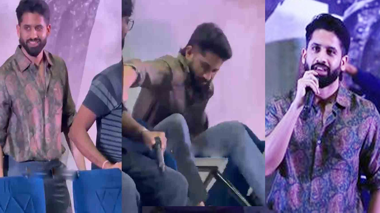 Naga Chaitanya Safe After Chair Breaks at Vrishakarma Event in Hyderabad