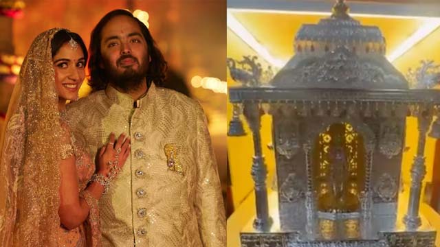 Inside, there's a silver temple structure surrounded by idols of Hindu deities like Lord Ganpati, Lord Vishnu, Goddess Lakshmi, Goddess Durga, and Radha Krishna, accompanied by mantras and shlokas.