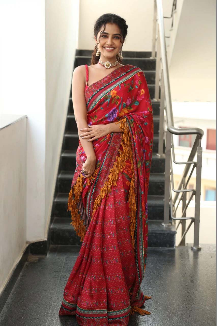 Lily alias Anupama Parameswaran played Tillu Gadi in the movie Tillu Square. They are fiddling with the beauty of the saree