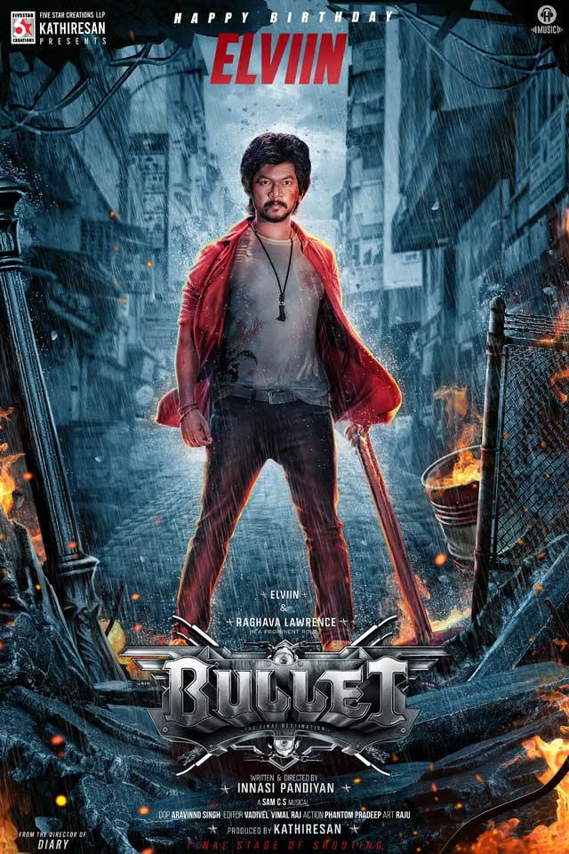 Bullet Movie Makers Released a new Poster Of Elviin, Raghava Lawrence, Vaishali Raj, Director and Cast, Elviin new poster, bullet movie release date