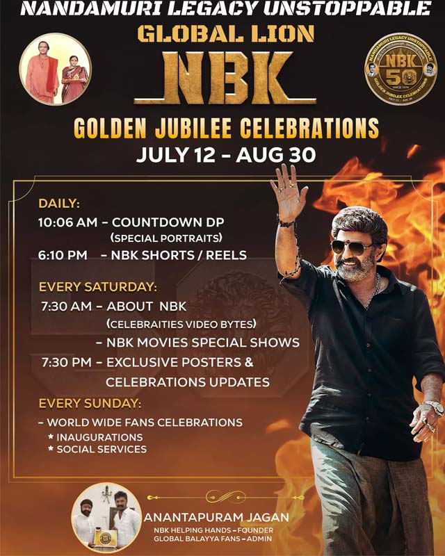 Balakrishna has completed 108 films so far and is set to mark his 50th year in the film industry on August 30, 2024. To celebrate this milestone, special celebrations lasting 50 days are being planned, taking the festivities to a whole new level.