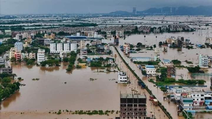 Areal View Visual Photos: Heavy Rain Floods in Vijayawada and Amaravati